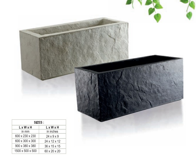 Bring a touch of natural elegance to your indoor and outdoor spaces with this premium rectangular planter from our Stone Craft Series. Crafted from high-quality Fiberglass Reinforced Plastic (FRP), this planter combines the rugged beauty of natural stone with the lightweight strength and durability of modern materials.