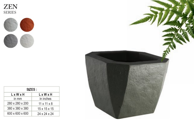 Bring calm, balance, and contemporary style to your indoor and outdoor spaces with the Zen Zen Series Planter. Designed with a striking faceted hexagonal form and clean architectural lines, this planter adds a touch of minimal luxury to homes, offices, hotels, resorts, and landscaped gardens. Its sculptural shape makes it a perfect statement piece, whether placed in a living room corner, balcony, patio, or entrance lobby.